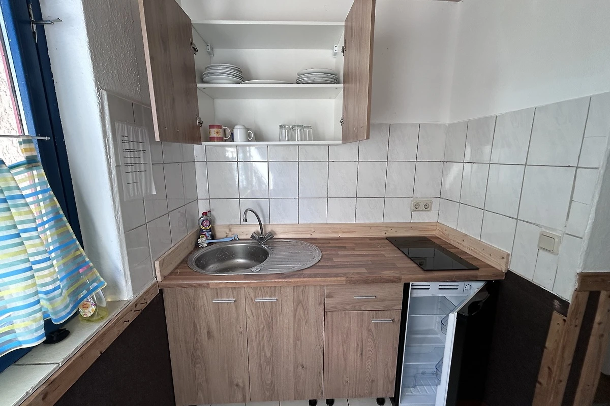 The standard equipment always includes a small equipped kitchen, so that you can prepare small meals yourself. The kitchen includes: