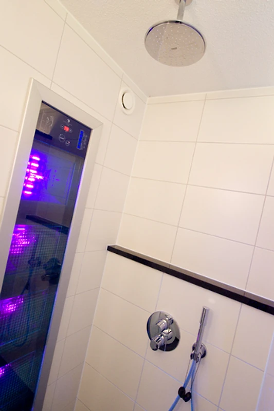 The luxury open-plan kitchen is fully equipped and invites you to cook extensively and dine together. Among other things, you have access to a five-burner hob with wok burner and an Illy espresso machine for a perfect coffee moment. On the ground floor, there is also a comfortable bedroom with a double bed and an en-suite bathroom featuring either a whirlpool or a walk-in shower with sunshower, offering extra convenience and accessibility.