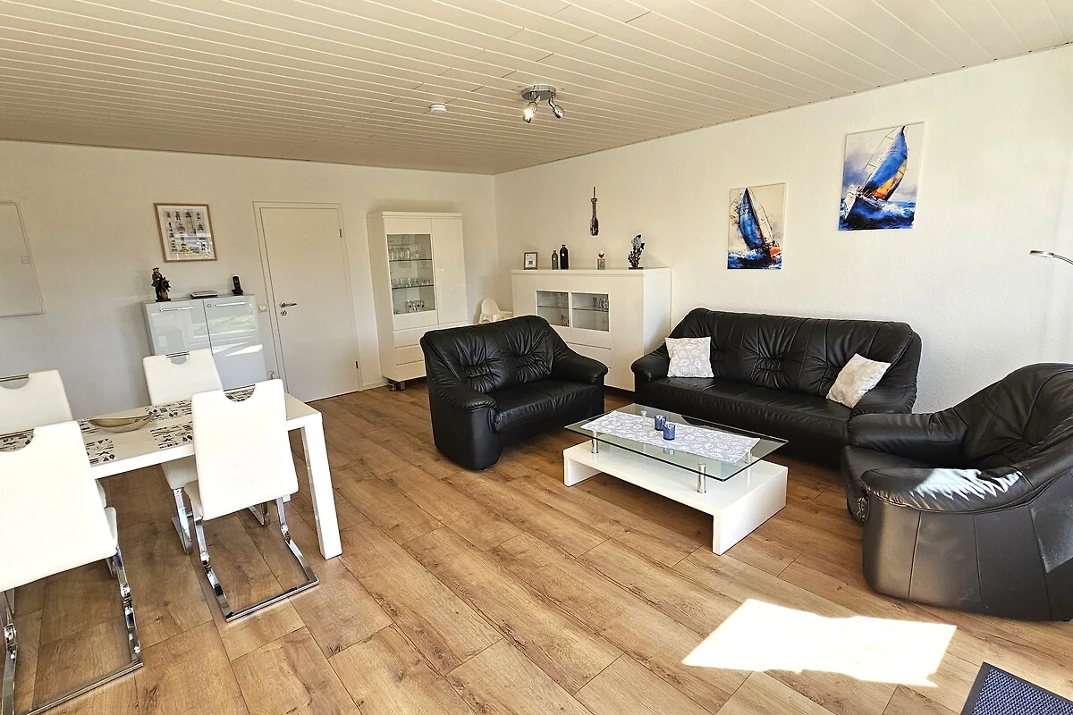 In the flat, which is equipped with underfloor heating, there is a spacious living and dining area with a fully equipped fitted kitchen incl. dishwasher and a cosy seating area. In the living area there is a high-quality sofa bed with a lying surface of x 200 cm.