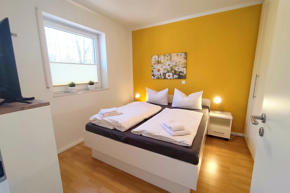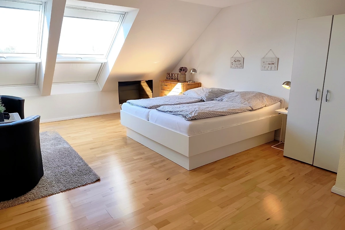 The Meerraum apartment also includes two bedrooms. On the first floor, The bedroom has a double bed (180 x 200 cm) with back-friendly comfort mattresses and comfortable adjustable slatted frames. A large wardrobe provides enough space to store your holiday clothes. For readers, there are reading lamps on the two bedside tables.