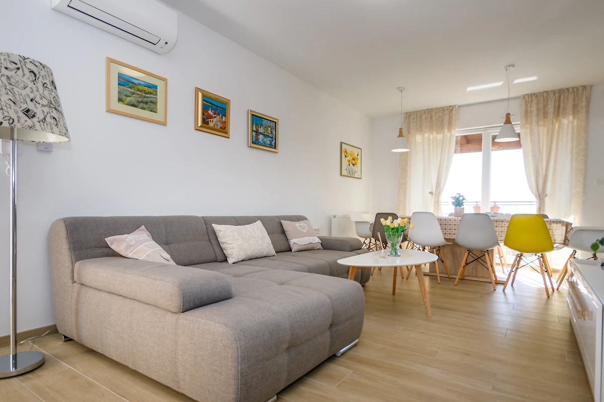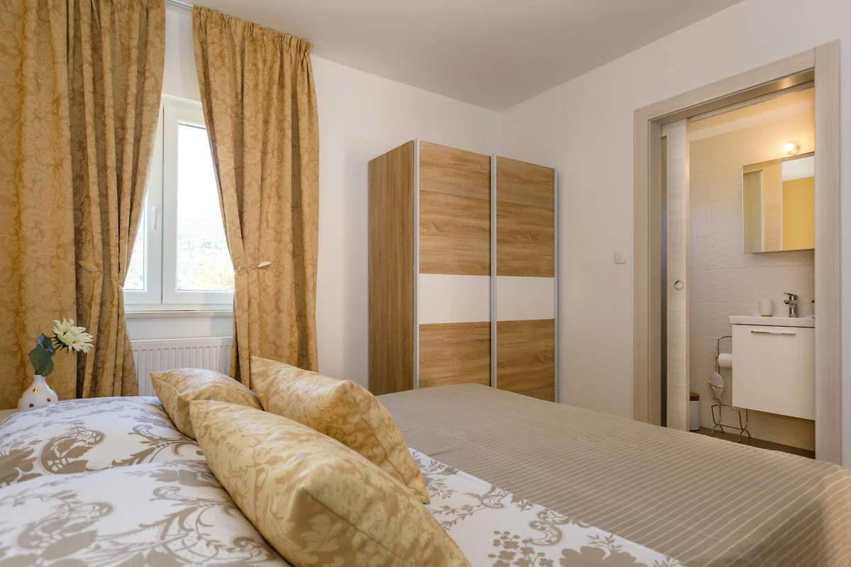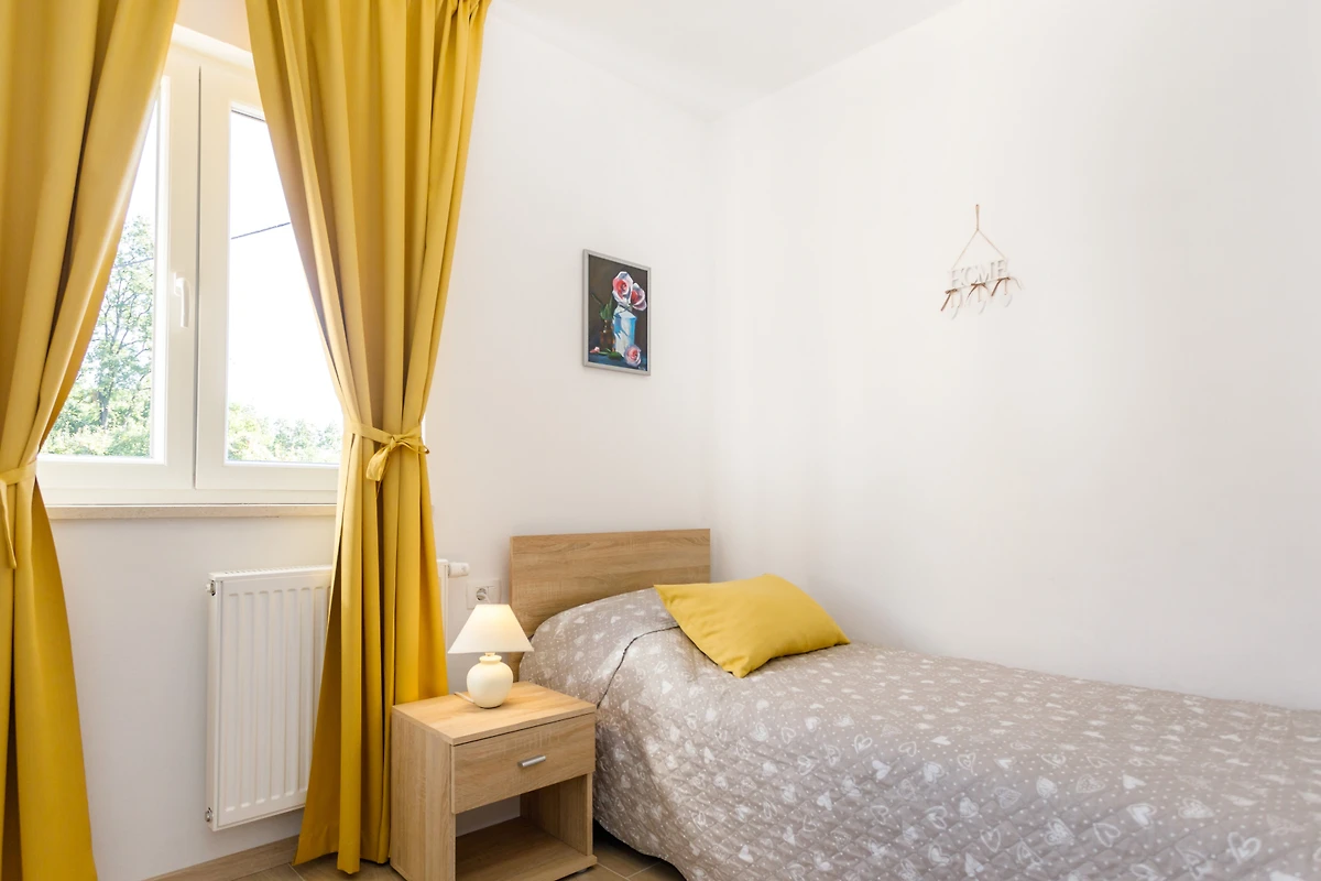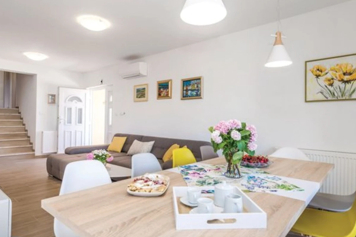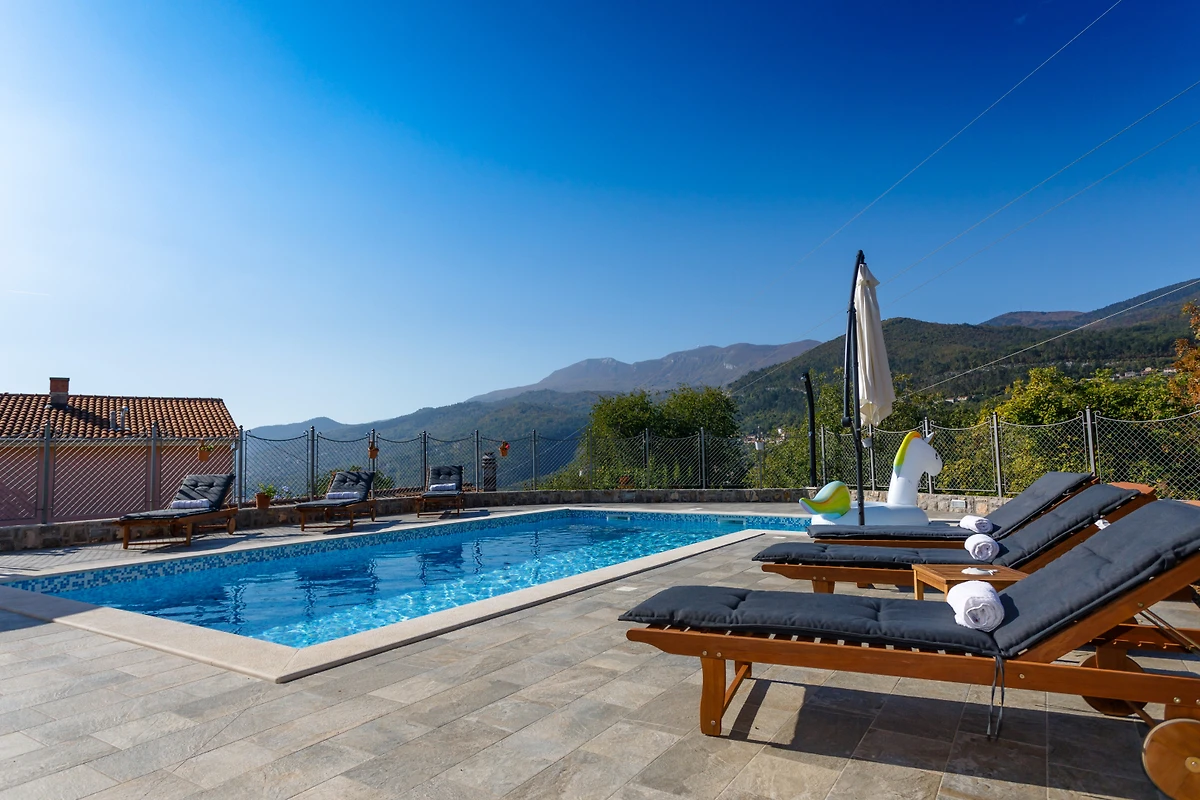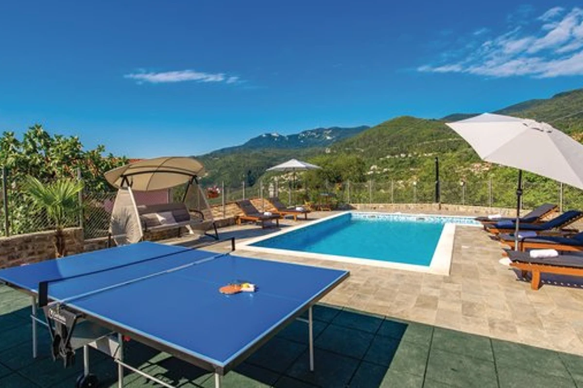 Located near the Učka Nature Park, above Opatija and Ičići, where the mountain slopes descend to the sea, this holiday home offers the perfect combination of fresh mountain and sea air. Away from the hustle and bustle of the city, it is the ideal retreat for a relaxing vacation. It has 6 bedrooms and 3 bathrooms and sleeps 11 guests. It will gladly host groups of young people and also allows you to organize parties.
