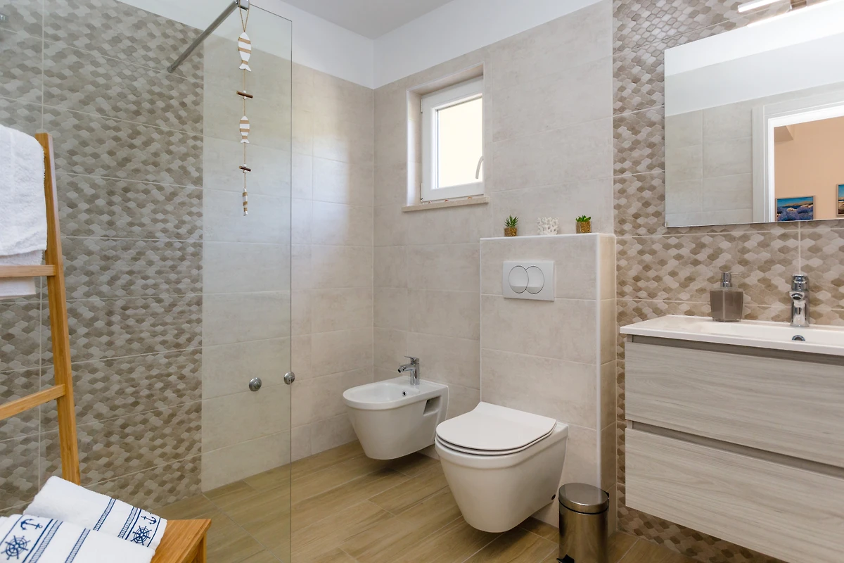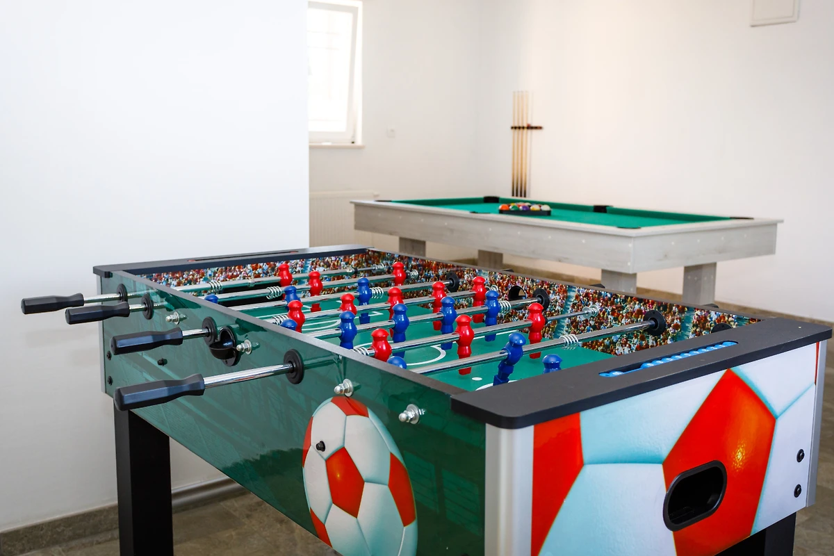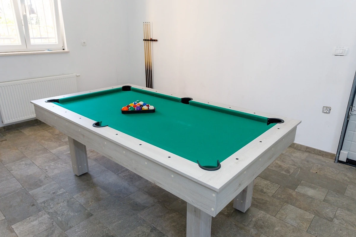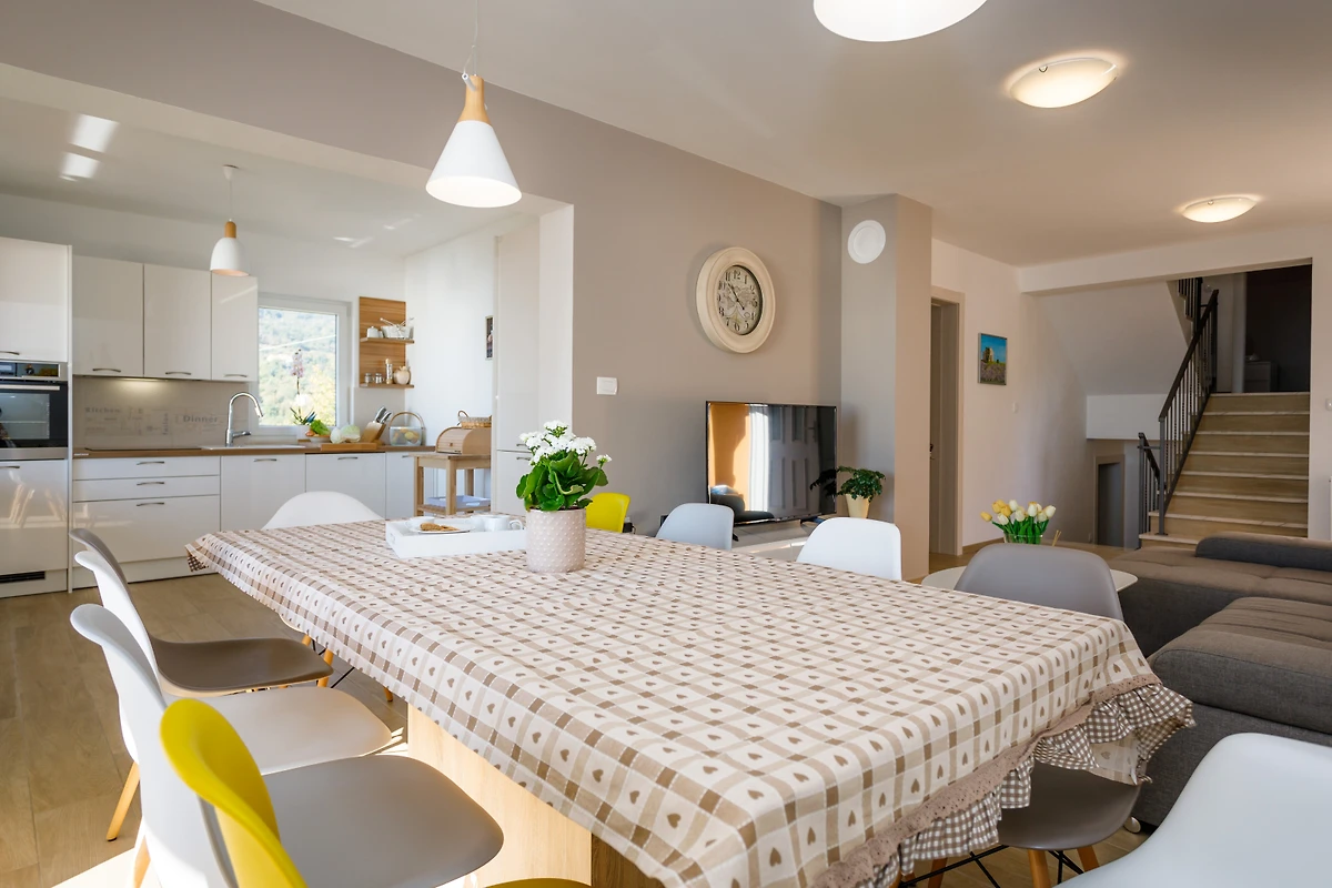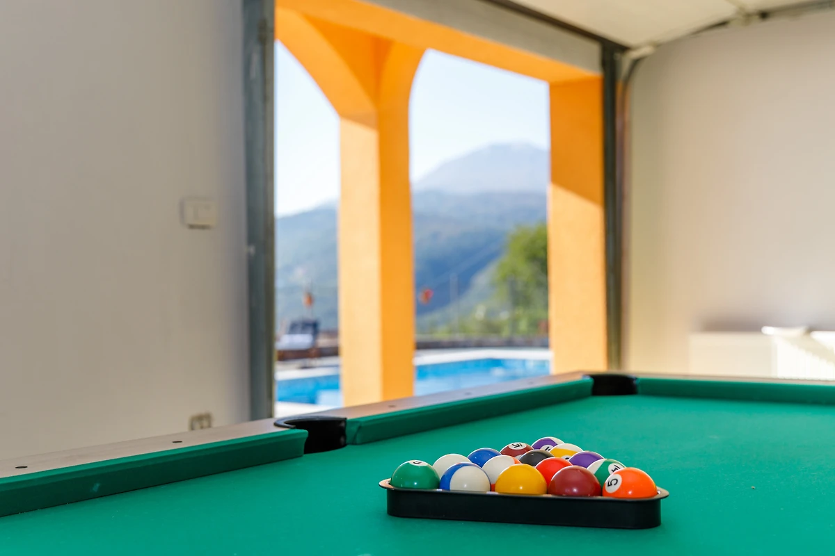 The house is situated on a spacious, fenced property, perfect for families with children or larger groups. Enjoy the spectacular panoramic views while relaxing in the hot tub, taking a swim in the pool or preparing your favorite specialties on the barbecue. For complete relaxation, settle into a lounger with your favorite book in hand. The garden, filled with the scents of lavender, immortelle and other Mediterranean plants, offers a special experience of nature and peace. On the ground floor of the house there is also a recreation and games room with billiards, darts and table football.