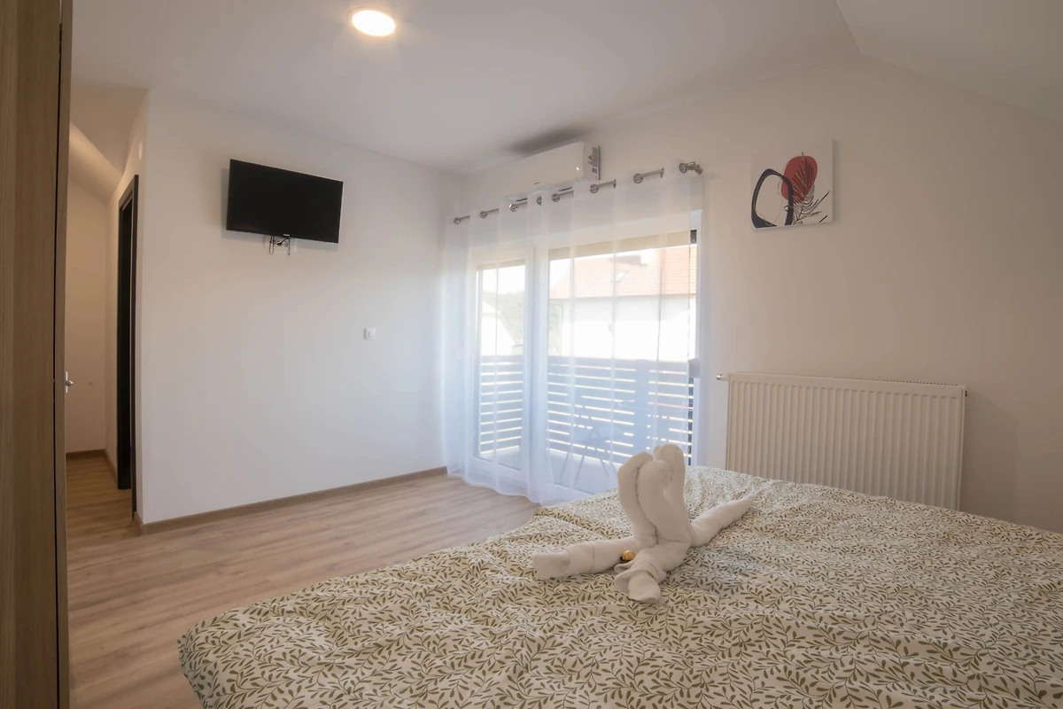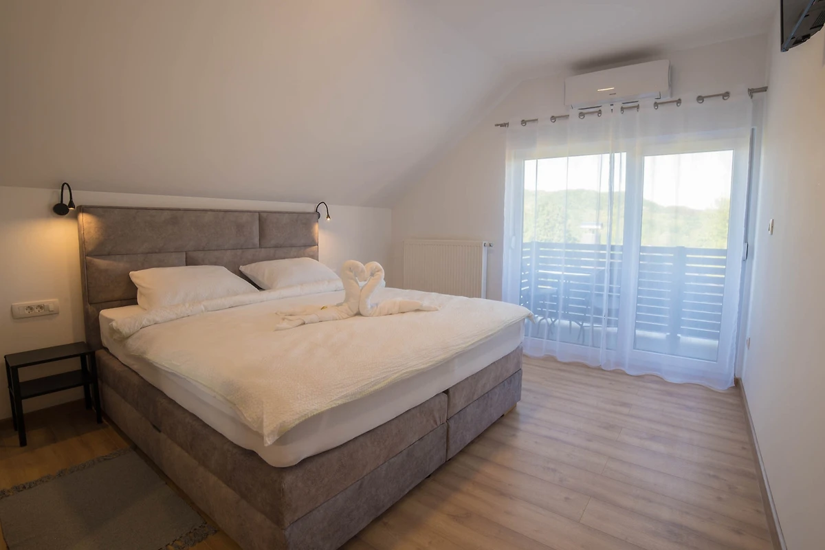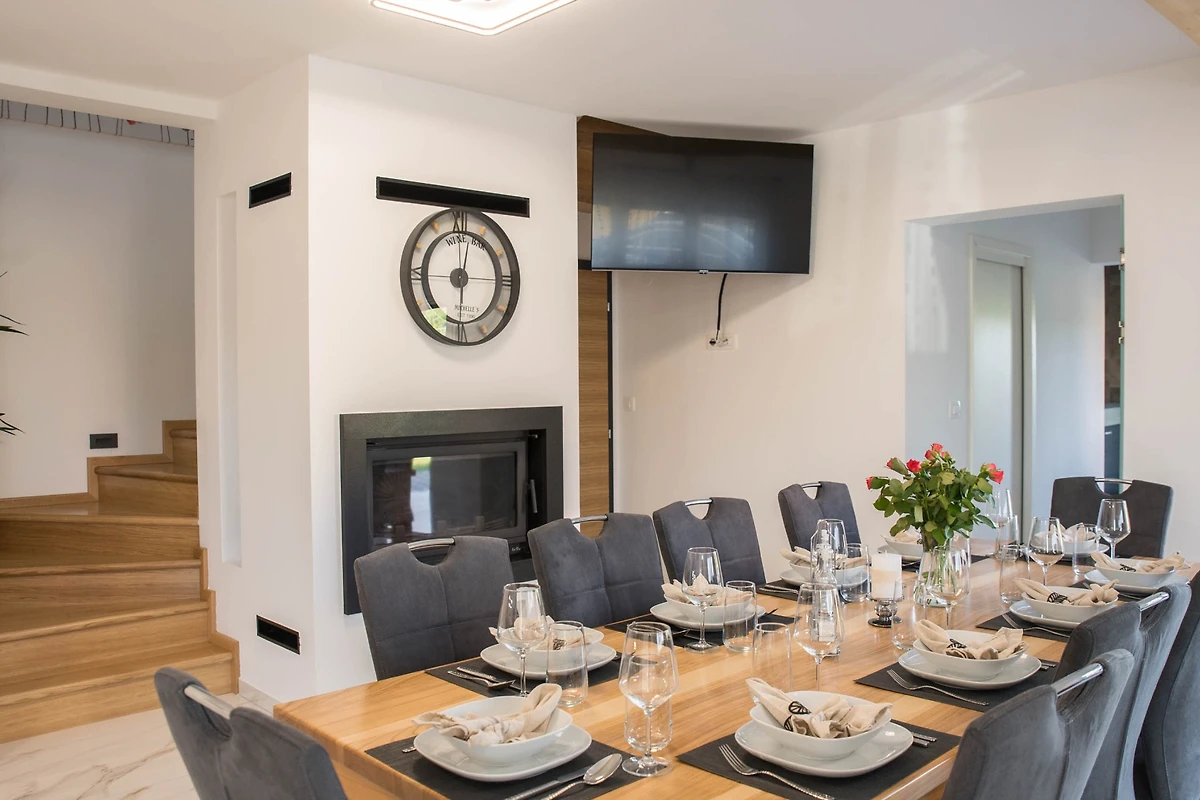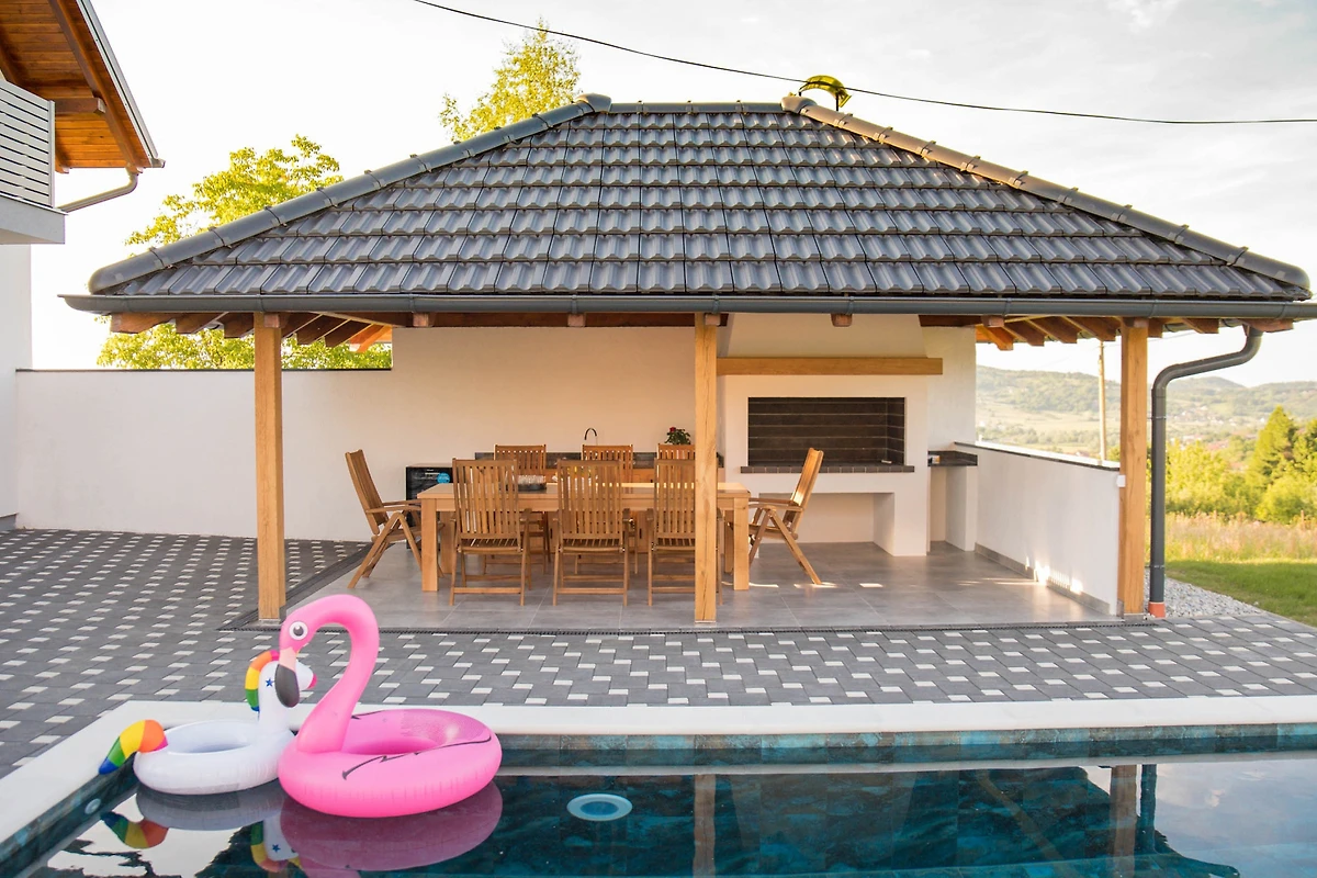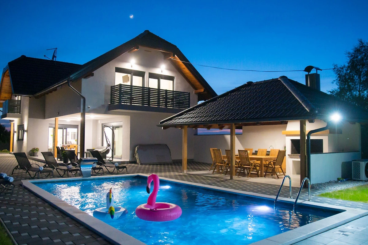 The villa in Ljubešcica has 4 bedrooms and has capacity for 10 people. The villa is nice, is spacious, and is 185 m². It has views of the garden and the swimming pool. The property is located 5 km from Novi Marof city, 5 km from Novi Marof supermarket, 64 km from Zagreb airport. The house is situated in a charming neighborhood in a residential complex.The accommodation is equipped with the following items: garden, garden furniture, fenced garden, terrace, washing machine, dryer, barbecue, fireplace, iron, internet (Wi-Fi), hair dryer, sauna, spa, central heating, air-conditioned, private heated swimming pool, open-air parking the same building, TV, satellite tv.In the induction open plan kitchen, refrigerator, microwave, oven, freezer, dishwasher, dishes/cutlery, kitchen utensils, coffee machine and toaster are provided.