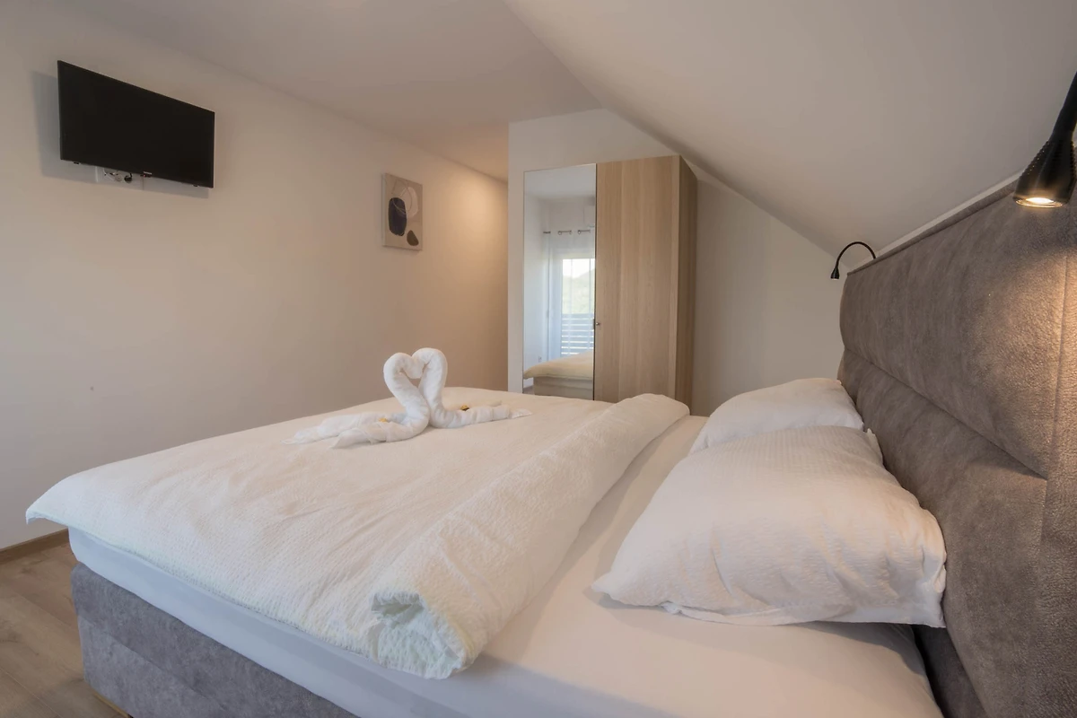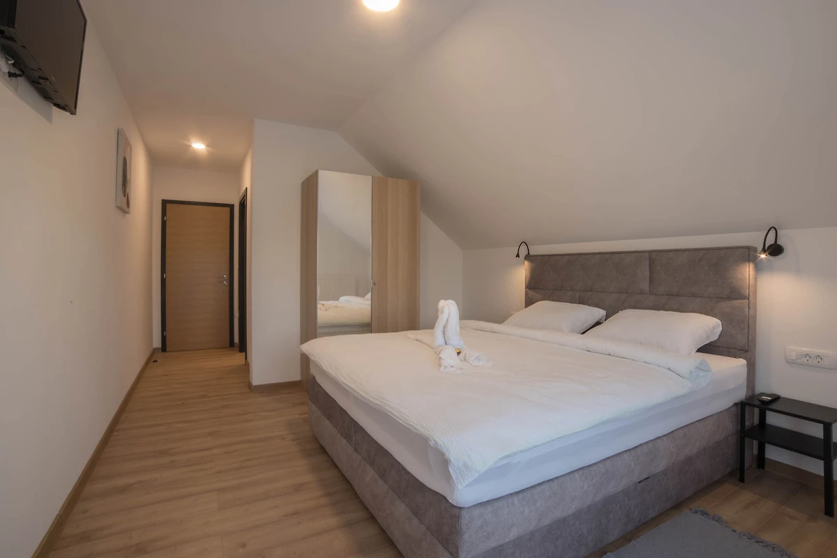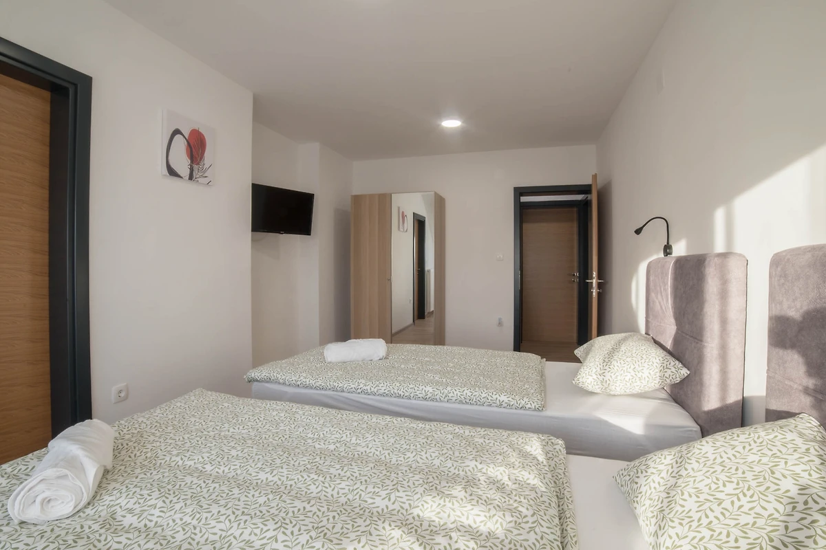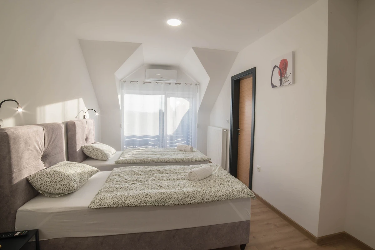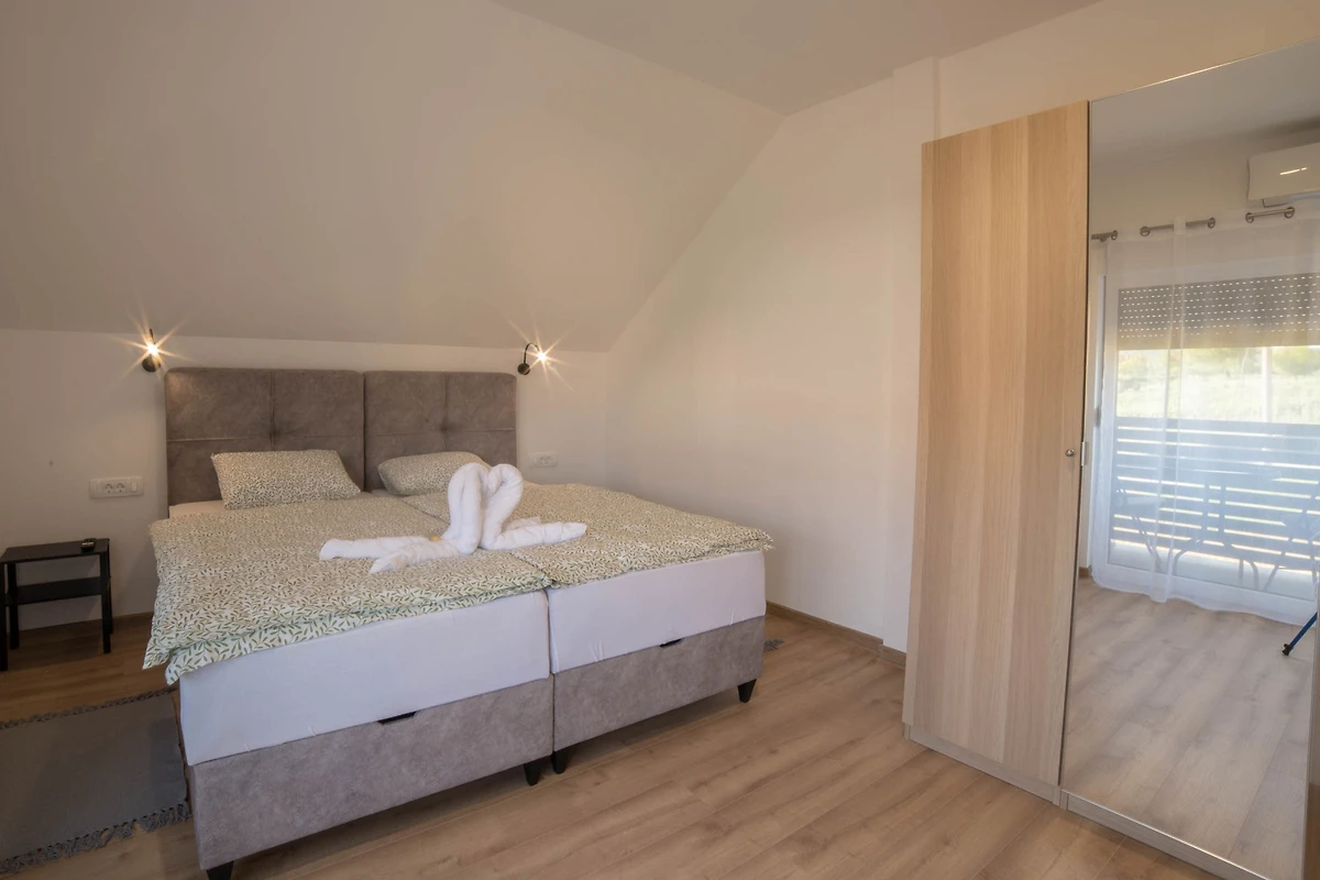 The villa in Ljubešcica has 4 bedrooms and has capacity for 10 people. The villa is nice, is spacious, and is 185 m². It has views of the garden and the swimming pool. The property is located 5 km from Novi Marof city, 5 km from Novi Marof supermarket, 64 km from Zagreb airport. The house is situated in a charming neighborhood in a residential complex.The accommodation is equipped with the following items: garden, garden furniture, fenced garden, terrace, washing machine, dryer, barbecue, fireplace, iron, internet (Wi-Fi), hair dryer, sauna, spa, central heating, air-conditioned, private heated swimming pool, open-air parking the same building, TV, satellite tv.In the induction open plan kitchen, refrigerator, microwave, oven, freezer, dishwasher, dishes/cutlery, kitchen utensils, coffee machine and toaster are provided.
